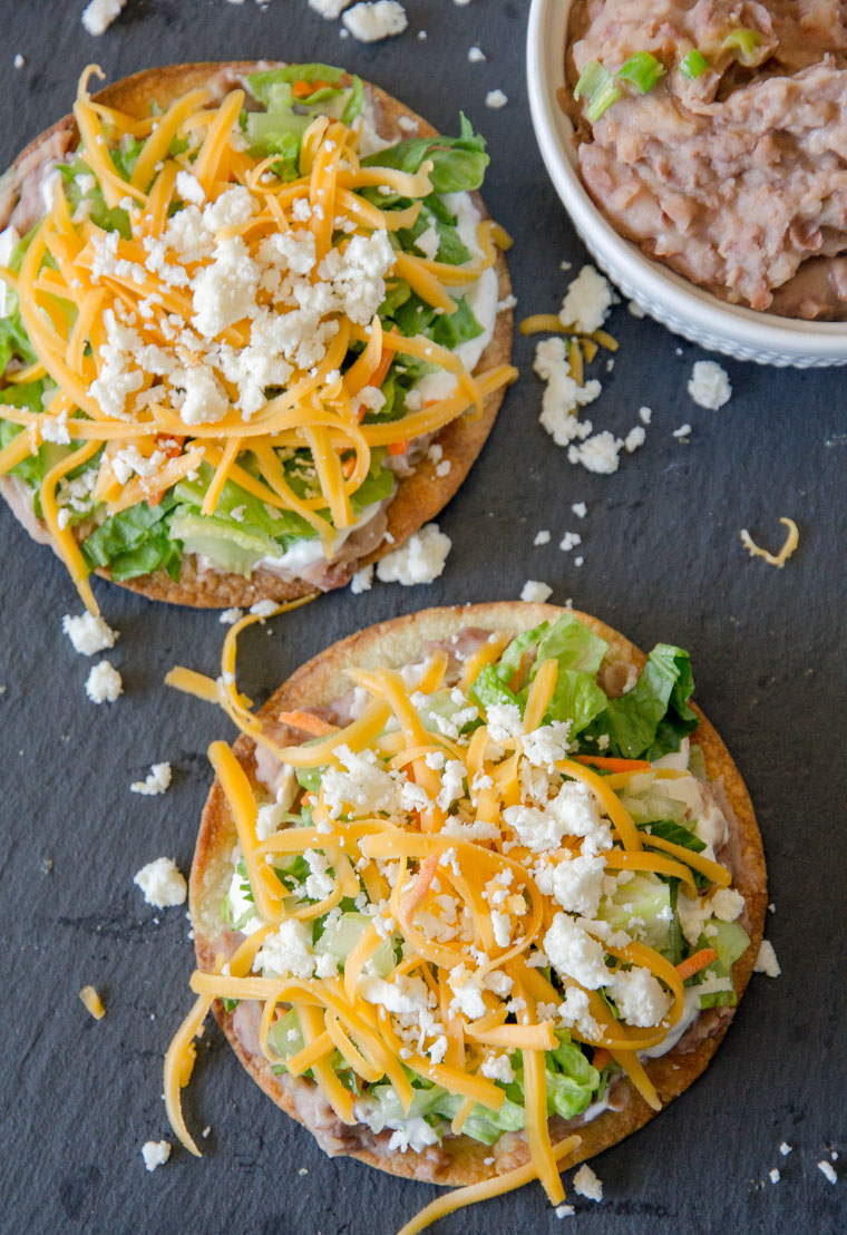 Weil alles so viel besser schmeckt, wenn er im Ofen vorbereitet ist! Sobald Ihre Maistortillas alle knusprig bekommen, bringen Sie sie aus und garnieren Sie mit allen Arten von Yummies: Salat, Cheddar-Käse, Avocado, zerkleinerte Karotten ... Sie können so viel experimentieren, wie Sie den perfekten Geschmack finden möchten!