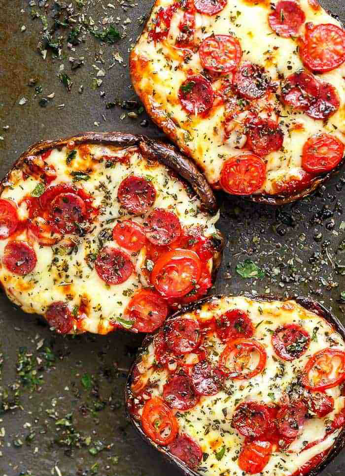 Mit Portobello-Pilz-Tassen und keinem Teig, dass diese einzigartigen kleinen Pizzen zum besten Ersatz werden, der es für eine eigentliche fetthaltige Pizza gibt. Nehmen Sie eine Handvoll Mini-Peperonis, so viel Käse, wie Sie möchten, Tomaten, ein Haufen italienischer Kräuter, und Sie sind gut zu gehen! Es schmeckt erstaunlich, aber ohne alle Kalorien einer regulären Pizza.