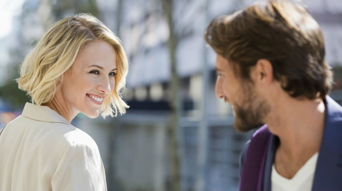 Es ist einer der ältesten Tricks des Buches. Wenn Sie Augenkontakt mit einem Mann über dem Raum machen und er nicht wegschaut, ist es ein gutes Sing. Es funktioniert so ziemlich dasselbe, wenn Sie bereits mit ihm sprechen. Schauen Sie ihm einfach in die Augen und setzen Sie das Gespräch fort, wenn er nicht wegschaut, lächelt oder errötet - Sie wissen, dass er in Sie ist.