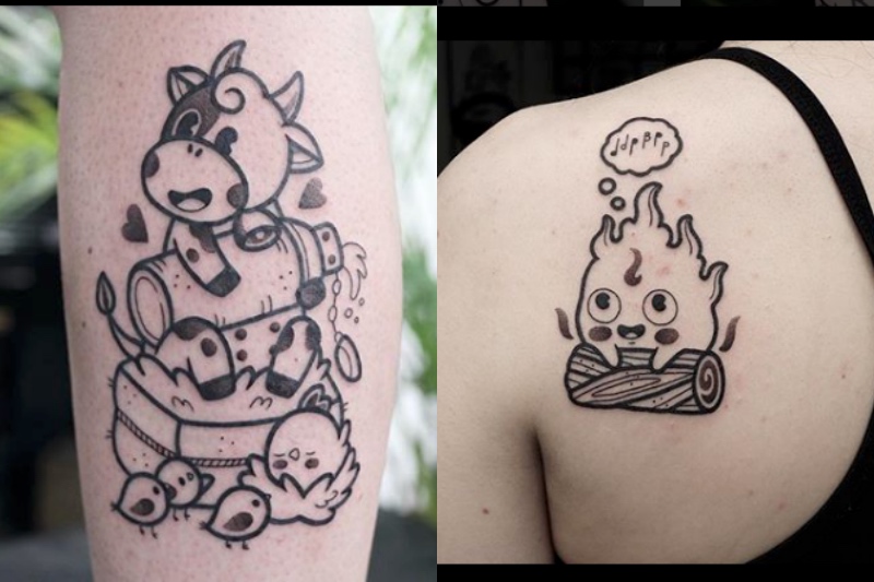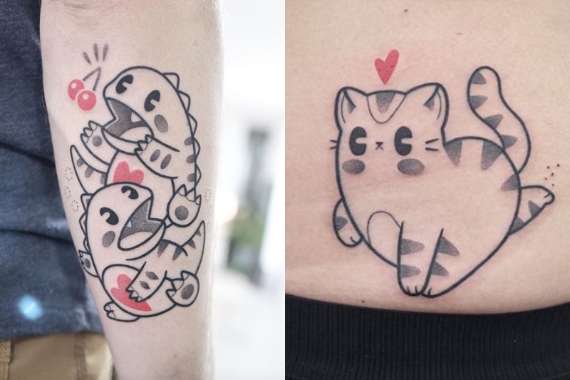 Hugo, im Gegensatz zu den vorherigen Tattoo-Künstlern, die wir erwähnt haben, verwendet dicke Linien, und seine Tätowierungen sind in der Regel größer. Die eigentliche Kunst, die er erstellt, ist sehr süß und Karikatur.