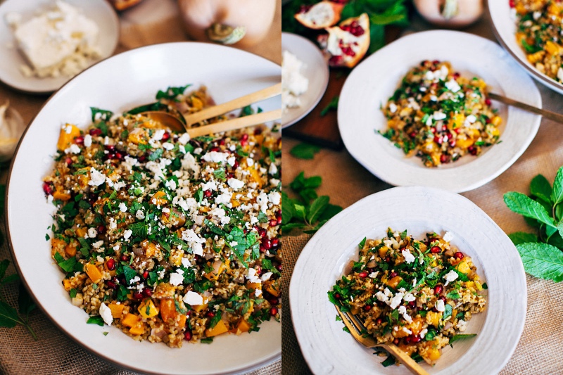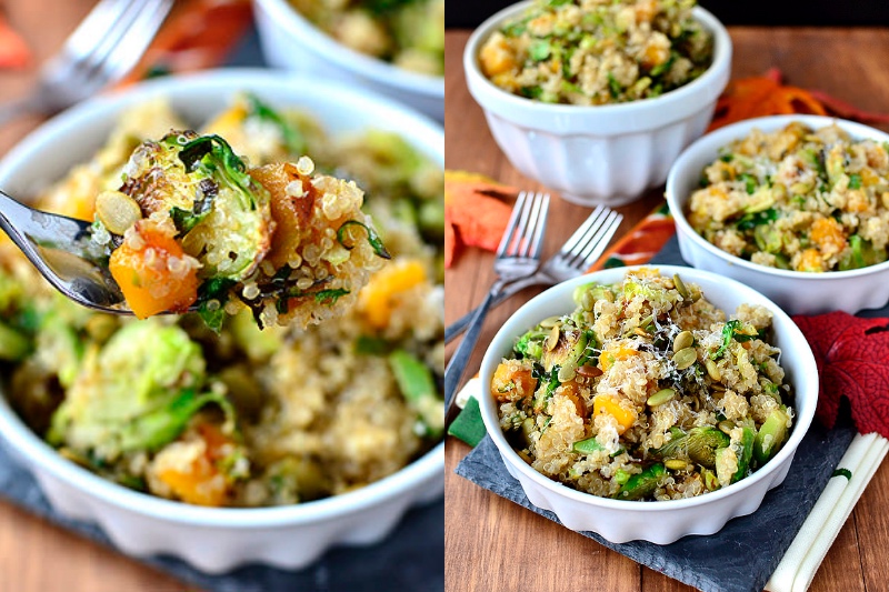 10. Quinoa mit karamellisierten Butternut-Kürbisen und gerösteten Brüsselen Sprossen