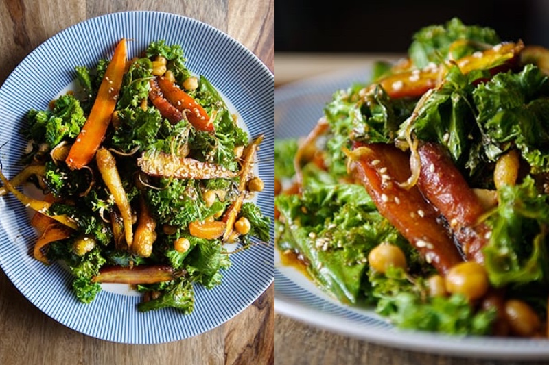 8. Gebratener Karottensalat mit Hummus-Vinaigrette
