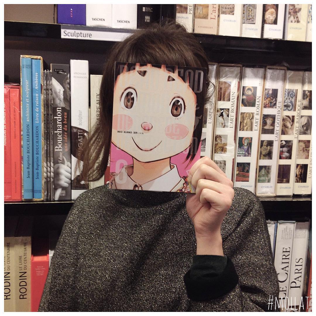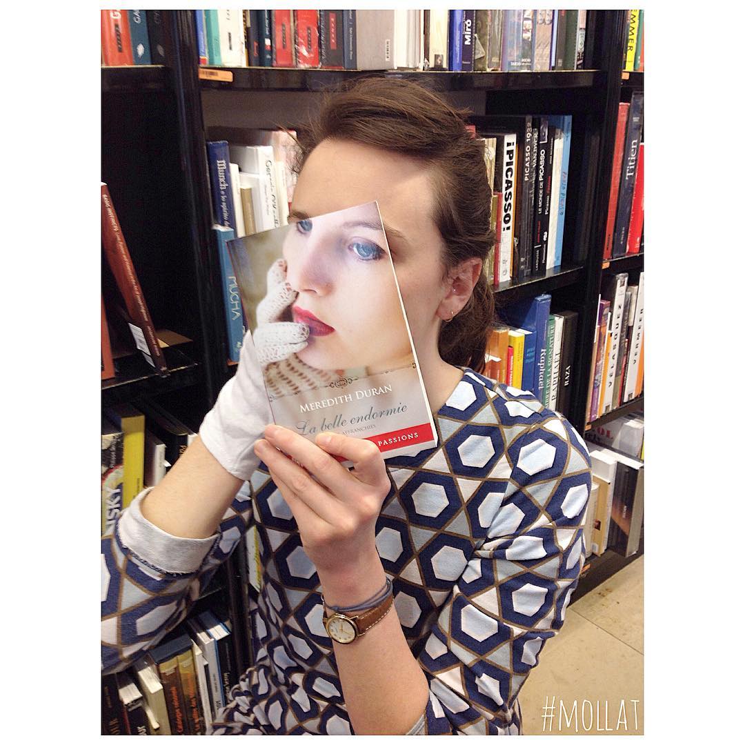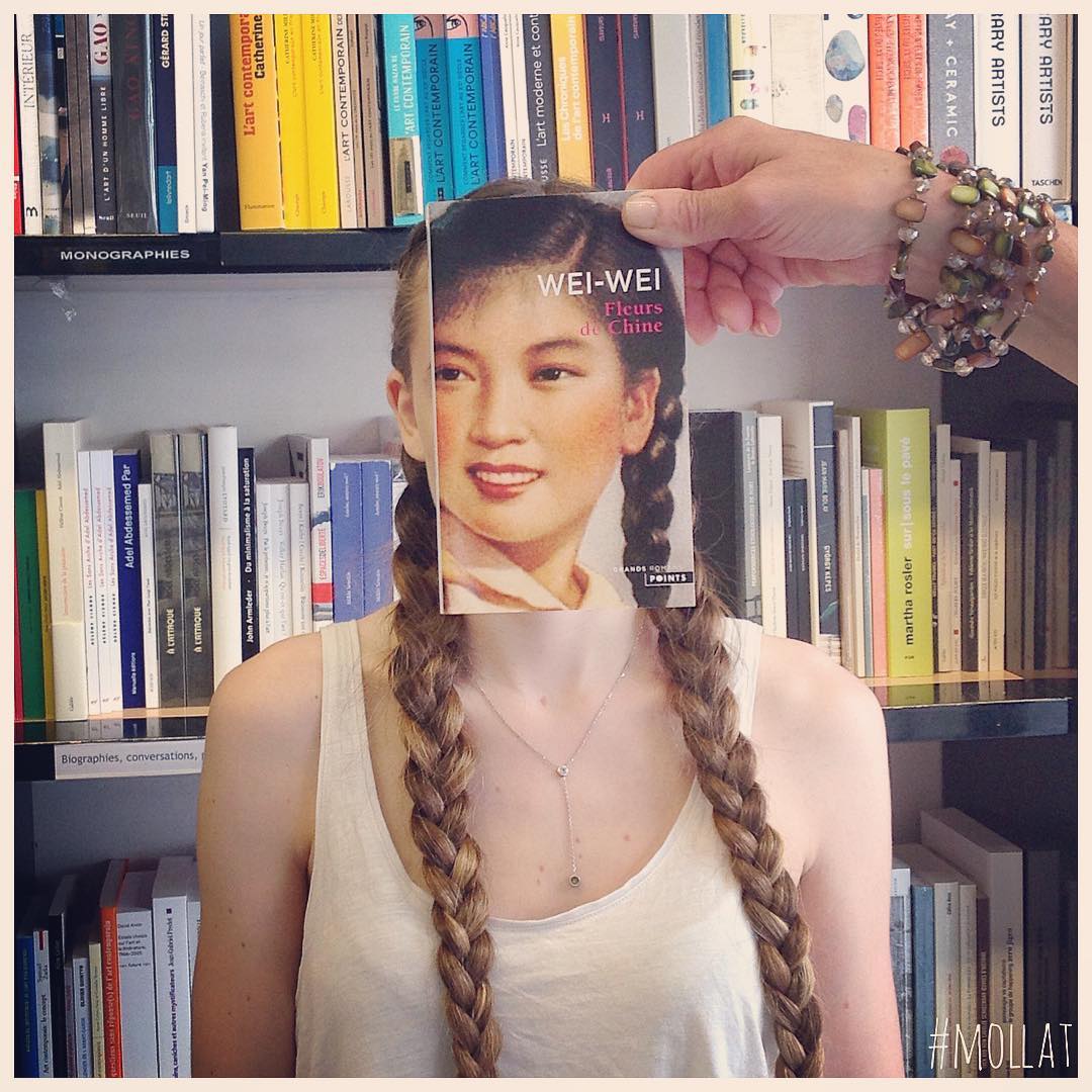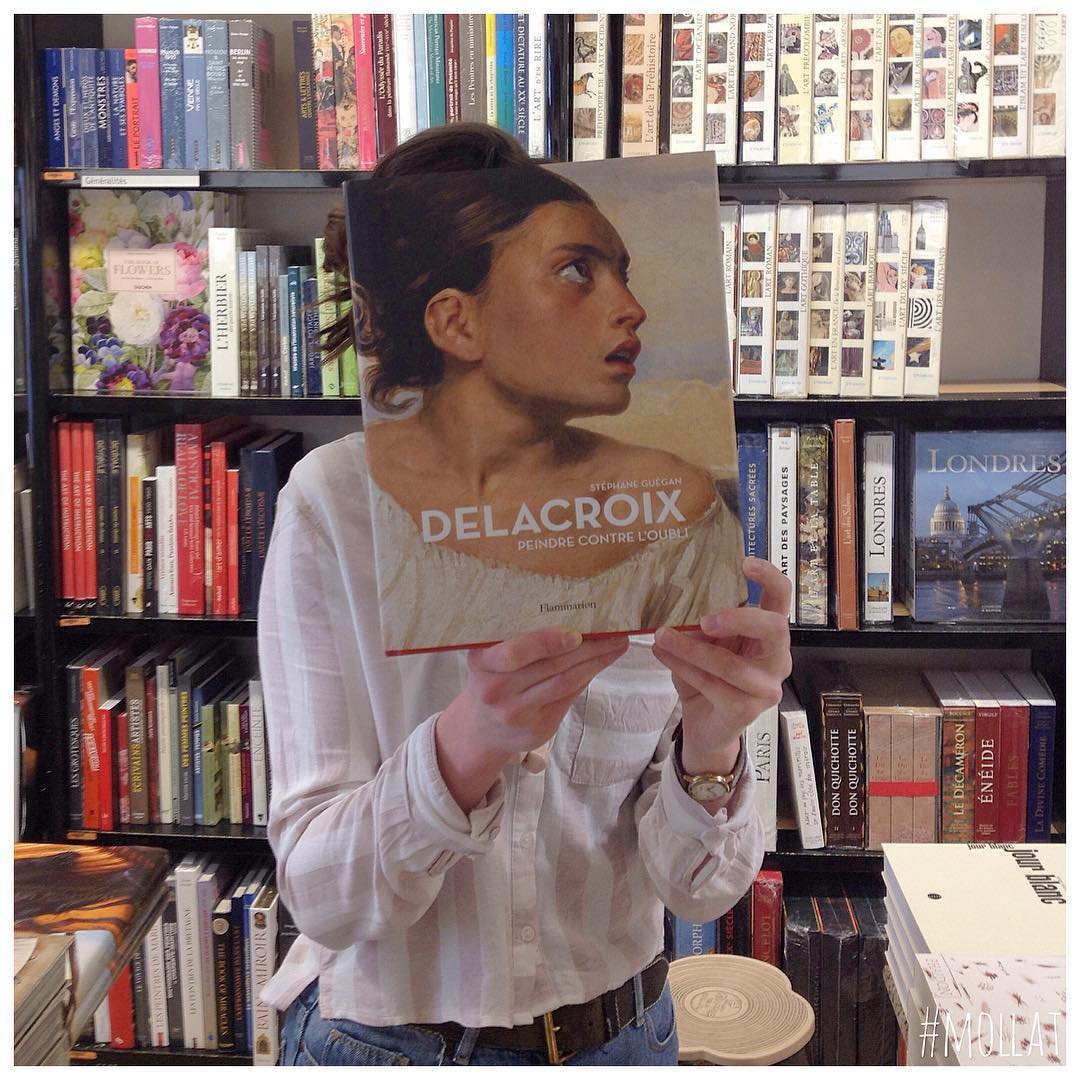 Willkommen zuLibrairie Mollat. Diese Französisch-Buchhandlung in Bordeaux wurde berühmt für ihre IG Serie Buch Gesicht, wo sie Buchcover mit ihren Angestellten Gesichter verschmelzen.