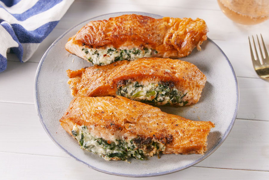 Lachs ist ein Essen von Göttern, aber sobald Sie es mit cremigem Spinatfüllung stopfen, wird es so viel mehr! Und Mozzarella macht einfach alles besser.