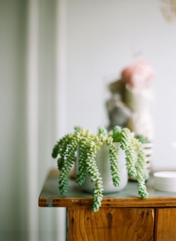 Hier ist ein einzigartig aussehender Sukkulente, das diese niedlichen kleinen grünen Schwänze wächst. Es sieht nicht nur großartig aus, sondern hat auch einen lustigen Namen - Esels Schwanz. Wer wollte in ihrem Bezug nicht in ihrem Haus? Außerdem ist es nicht toxisch für Katzen und Hunde, also wenn Sie Haustiere haben, ist dies eine sichere Wette.