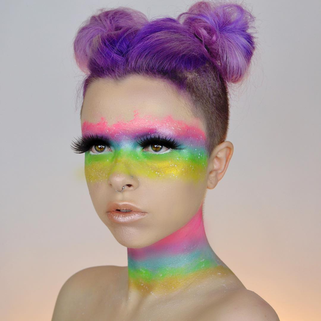 Wenn Sie sich nicht auf eine bestimmte Person oder einen bestimmten Charakter beschränken möchten, können Sie den Halloween einen kreativeren Ansatz machen und versuchen, dieses Öl-Slick-Look zu versuchen. Ehrlich gesagt, was auch immer Sie mit diesem Make-up-Look tragen - es wird cool aussehen.