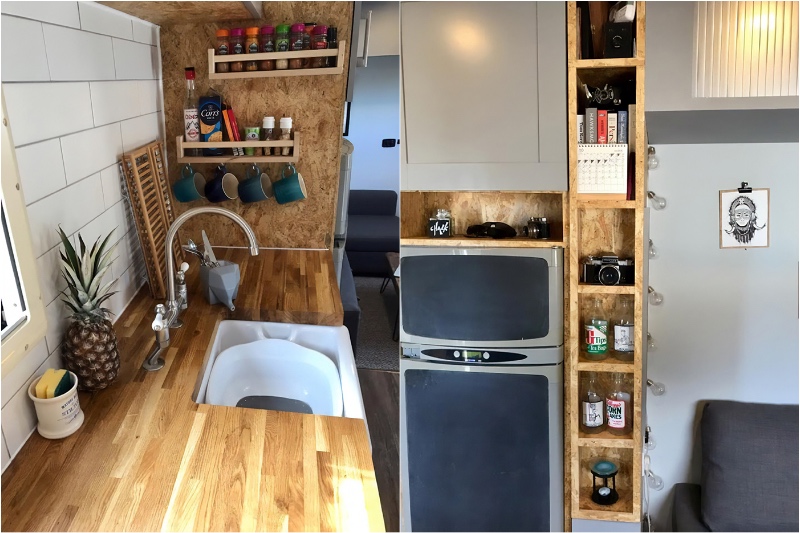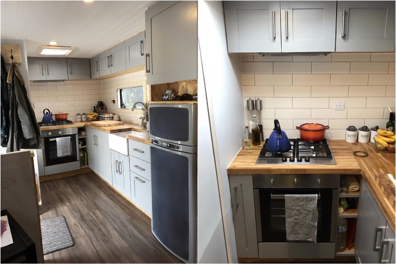 Weil sie alles selbst getan haben, konnten sie an alles denken und auf ihre spezifischen Bedürfnisse anpassen. Sie verfügen über eine voll ausgestattete Küche mit einem Backofen und einem Kochfeld, einem anständigen Kühlschrank, ausreichend Platz und Arbeitsbereich, um ein Familienessen zu kochen.