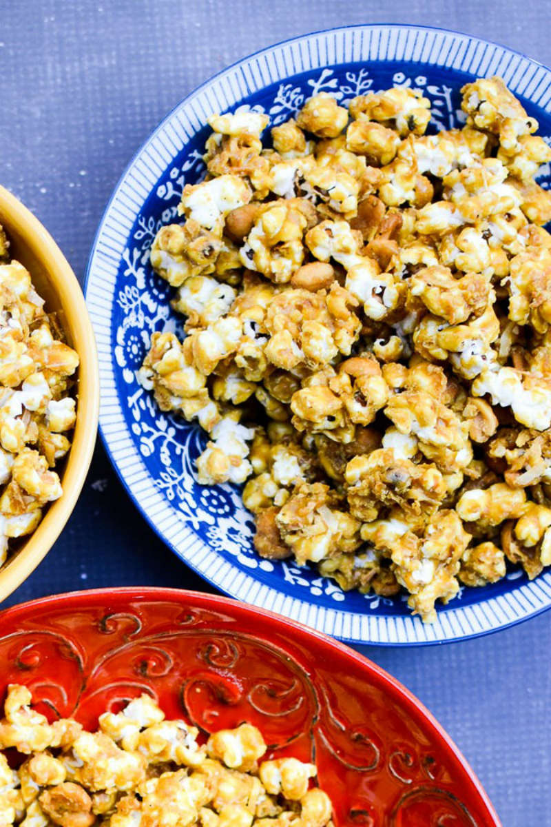 Wenn Sie nach etwas Geschmackvollem und Lichts suchen, um während Ihrer Herbst-Binge-beobachteten Sitzung aufzupassen, ist hier ein Genuss für Sie. Dieses indisch inspirierte Popcorn bietet so viele Gewürze wie Ihr Lieblings-Curry mit einer gesüßten zerkleinerten Kokosnuss, um alles auszugleichen. Das ist reine Köstlichkeit!