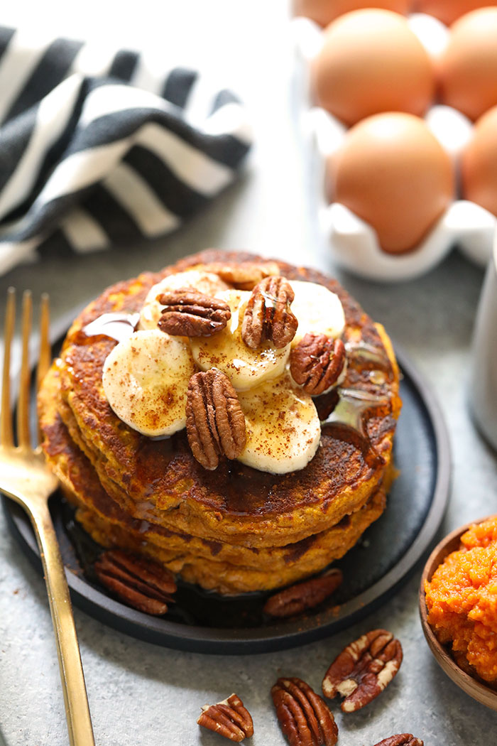 Okay, wir geben zu, dass es viele Kürbisrezepte auf dieser Liste gibt. Und warum nicht? Kürbis ist eine der vielseitigsten und leckeren Zutaten, die mit buchstäblich etwas kombiniert werden können. Für dieses leckere Rezept brauchen Sie etwas Kokosnussmehl, Kürbispüree, ein Bündel Gewürze, Ahornsirup und ein bisschen Fantasie. Diese Pfannkuchen können leicht zu Ihrem Lieblingsfrühstück werden!