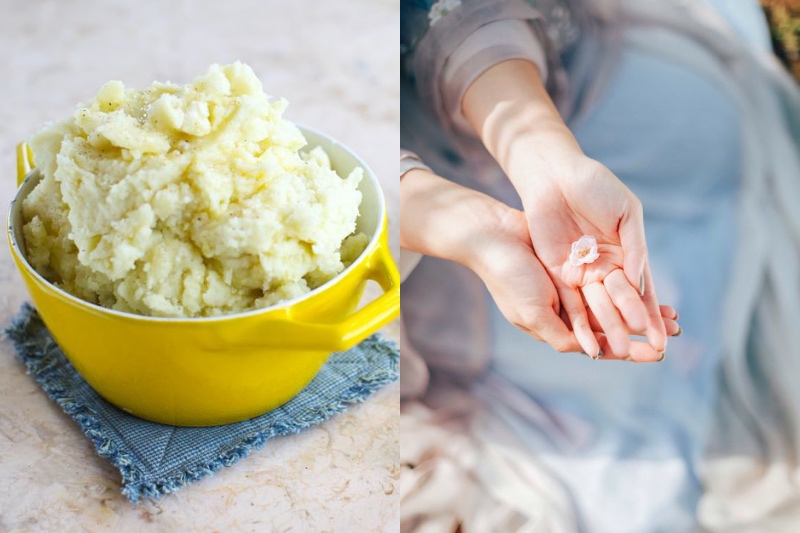 Sie würden wahrscheinlich nicht denken Sie an Kartoffelbrei als Handmaske, aber es ist eigentlich Super nahrhaft. kochen nur Kartoffeln, zerdrücken, fügen Sie Milch für Cremigkeit und auf die Hände, während er noch warm ist. Warten Sie, bis sie abkühlt und abzuwaschen, folgen Sie mit Ihrem normalen Handcreme auf.