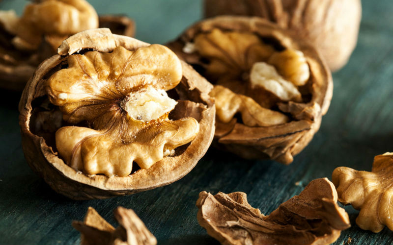 Walnüsse. Vegetarier, die sich für das Fleisch entscheiden, brauchen dieses Essen, das reich an Omega-3-Fettsäuren ist. Es enthält Alpha-Linolensäure, und der Mangel kann zu Ekzemen führen.