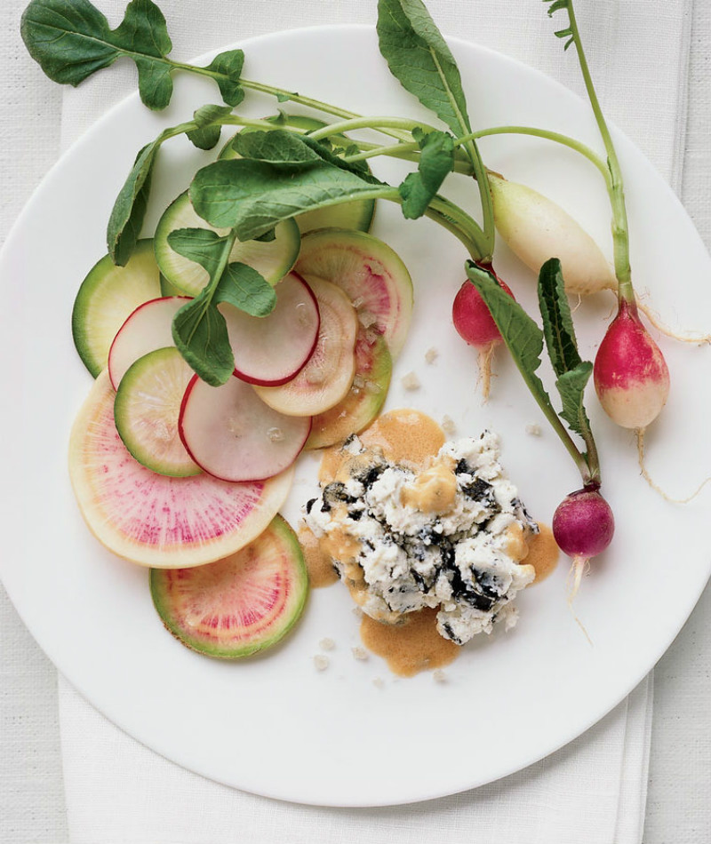 Radieschen mit Chèvre, Nori und geräuchertem Salz