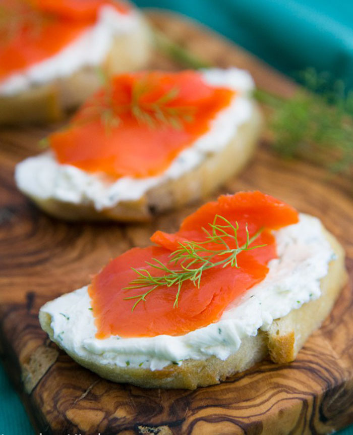 Dies ist ein klassisches Rezept, das gut für buchstäblich beliebige Gelegenheit ist, eine Geburtstagsfeier oder in unserem Fall ein Thanksgiving-Dinner. Mit Frischkäse, frischem Baguette und geräuchertem Lachs vorbereitet, wäre es schwer, ein paar Stücke nicht selbst zu schleichen, bevor Sie den Gästen dienen!