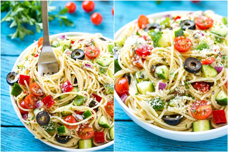 Wussten Sie, dass Spaghetti die ganze Zeit nicht heiß serviert werden muss. Manchmal kann man einen Spaghetti-Salat machen und es schmecken genauso gut. Ein perfektes Mittagessen können Sie zu Hause machen und am nächsten Tag zur Arbeit nehmen.