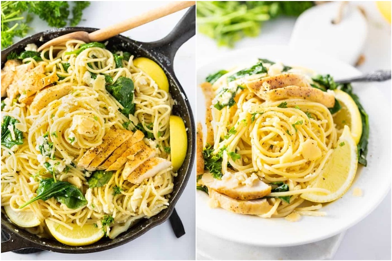 3. Zitrone Ricotta Parmesan Pasta mit Hühnchen & Spinat