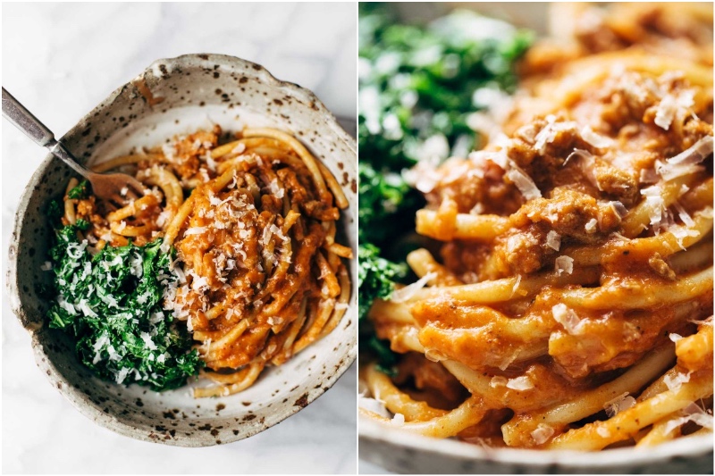 6. Cremige Kürbis Spaghetti mit Knoblauch-Kohl