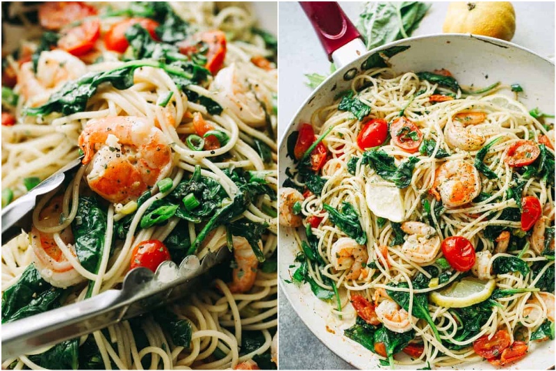7. Zitrone Garnelen und Spinat mit Spaghetti