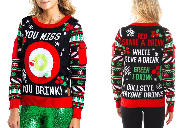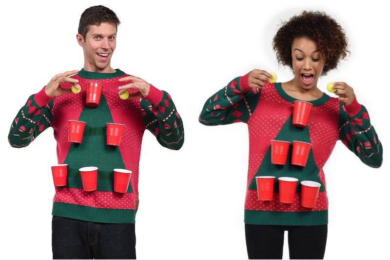 Da Aries Zelt ziemlich wettbewerbsfähig sind, müssen Sie einen guten Weg finden, um es auszuteilen. Sicher, Sie können versuchen, den hässlichsten Weihnachts-Pullover zu finden, aber das ist ziemlich subjektiv. Was ist ein objektiver Weg, um zu gewinnen? Spielen Sie ein Spiel mit klarem Schnittregeln. Wie ein Trinkspiel. Und diese Art von Jumper ist ideal dafür.