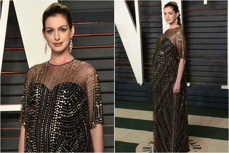 Anne Hathaway wählte einen schwarzen Naeem Khan Kleid mit einem schönen Gold für die 2016 Oscars besetzt Overlay. Sie sah fast königlich und wir wetten, das ist genau das, was sie für sich ging. Alle begrüßen die Königin.
