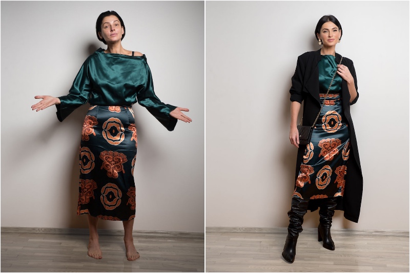 Was sie erhielt, war jedoch nur traurig. Es gab scheinbar keine Möglichkeit, irgendwelche dieser Kleider gut auszusehen. Sie könnten entweder weinen oder lachen darüber, wie schlecht sie aussahen. Das Material war alles falsch, die Passform ähnelte nicht einmal, was sie auf der Website sah, und selbst die Farben waren auch ein bisschen aus. Agne hatte jedoch ein paar Tricks in den Ärmel. Zuerst bügelte sie alle Kleider, die bereits viel geholfen hat. Sie schlägt auch vor, die richtige Art von Unterwäsche oder sogar Shapewear zu tragen, um aus dieser Situation das Beste herauszufinden. Um die Gegenstände gut zu machen, schneidet die Agne nicht über das Schneiden oder stecken das Material.