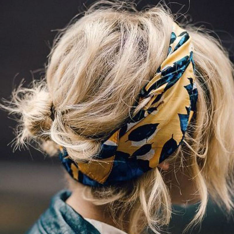 Dieser Stil gewinnt viel Traktion und ist super bequem. Mutige, gestreifte, Tupfen ... Es gibt keine Regeln und es kann ein Fransen oder ein festlicher Blick sein. Falten Sie den Schal einfach etwa 3 cm in einer Bandform, legen Sie die Mitte in das Nickerchen des Kopfes und bringen Sie es um die Seite der Haarlinie, binden Sie an der Vorderseite des Haaransatzes über der Stirn. Fühlen Sie sich frei, um es extra süß zu machen, indem Sie mit einem Bogen zugänglich sind oder einfach Sie einfach lassen, wie es ist. Das perfekte Rezept, wenn Sie das Gefühl haben, dass Sie einen schlechten Haartag haben.