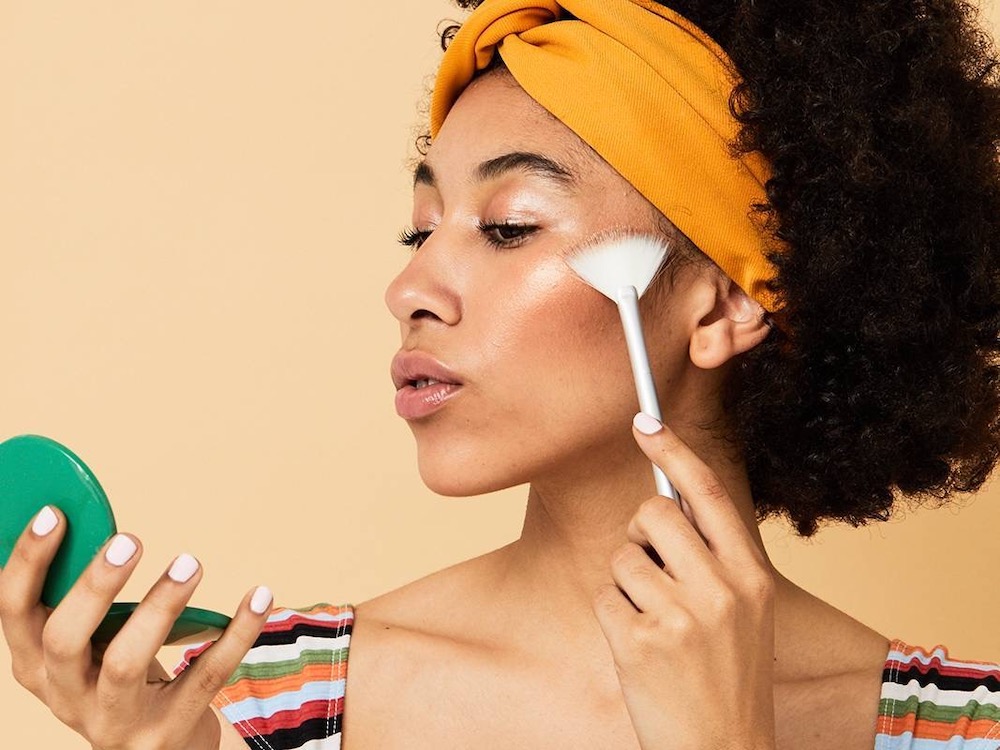Highlighter kann eine Welt des Unterschieds machen! Holen Sie sich einen Highlighter, der Ihrem Ton entspricht, und fegen Sie es über den höchsten Teil der Wangenknochen, um von der Iris zu Ihrem Haaransatz zu gehen. Dies fügt einen jugendlichen, frischen Glühen hinzu, anstatt sich zu erröten, was Sie altern kann.