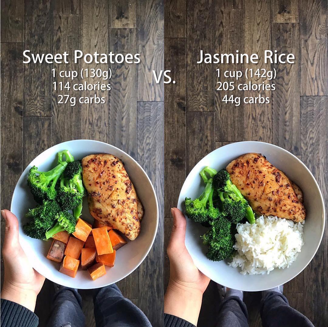 Dieses Rezept bricht Stereotypen ab, die weißen Reis für Sie schlecht ist, aber trotzdem eine Gewichtsabnahme-Version bietet, die es für süße Kartoffeln mit einer Seite saftiger Hühnerbrust subsiert. Der Autor erklärt, wie süße Kartoffeln ein Vitamin-Kraftwerk sind.