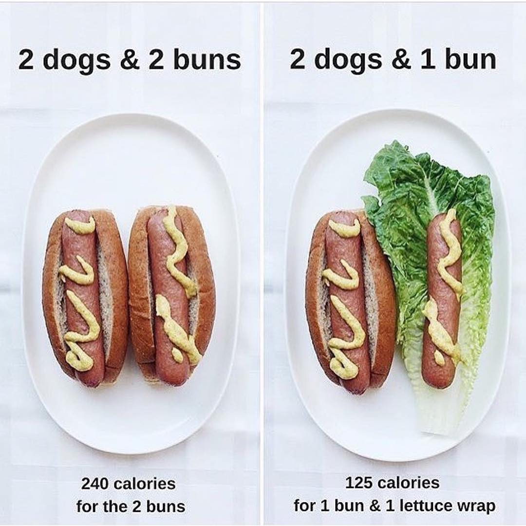 Manchmal verlangen Sie einen heißen Hund, und kein gesundes Essen von Hack wird dieses Gehäuse ersetzen, das mit fleischigem, Straßenkörpern gefüllt ist. Wenn Sie zwei Hot Dogs essen, aber nur ein Brötchen verwenden, tauschen Sie den anderen für eine gesündere Salatwicklung aus.