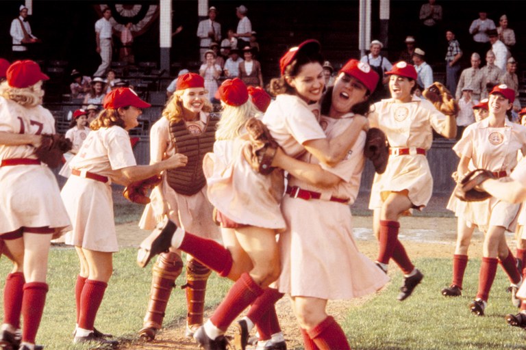 Alle Baseballfans in der Menge? Du wirst diesen alten School-Flamm lieben, der von Penny Marshall unterrichtet wird, zeigt Frauen im Sport und bringt etwas Emotion an das Spiel von Hardball. Darin treten zwei Schwestern an der weltweit ersten weiblichen Profi-Baseball-Liga an und versuchen, es erfolgreich zu machen, selbst durch ihre sich entwickelnde Rivalität.