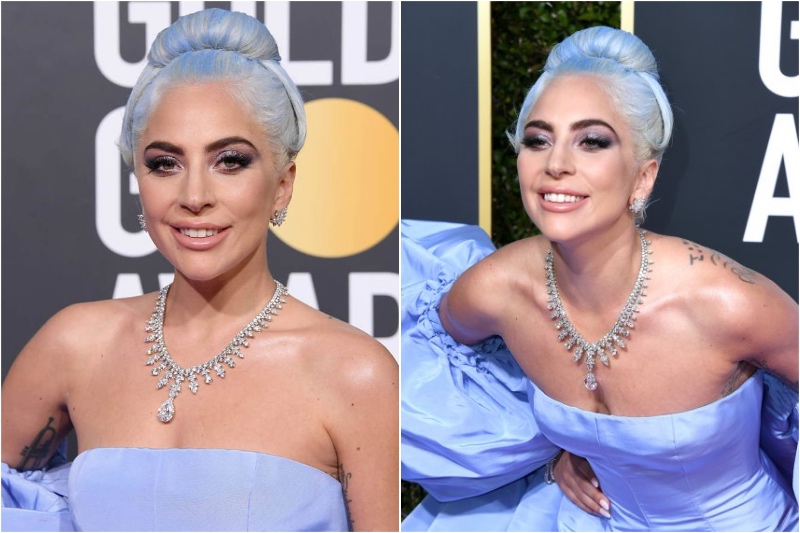 Lady Gaga sah dieses Jahr in diesem Jahr in den goldenen Globen in diesem Jahr in diesem massiven blauen Bürgerkleid aus, aber das, was uns am besten mochte, ist, dass alles, was sie trug, zu passen schien. Diese Halskette ist, dafür zu sterben, und es ergänzt ihr Outfit, ihr Make-up war auch neutral, aber mit einem blauen Smokey-Auge, das mit ihrem blauen Haar und dem Kleid großartig aussah.