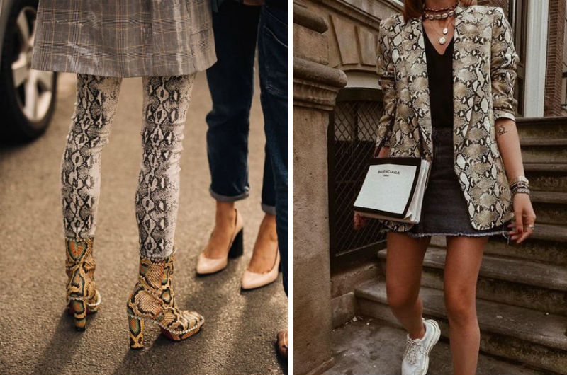 Leoparde ist jetzt veraltet, aber Snakeskin ist sexy und in. Versuchen Sie es mit Stiefeln, strukturierten Hosen oder einem slinkigen Kleid, um Ihrem Look etwas VA-VA-VOOM hinzuzufügen und einen Tierdruck erfolgreich abzunehmen.