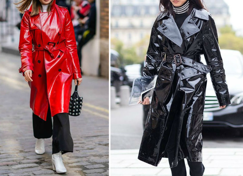 Laute und helle Vinylmäntel sind vor allem beim Übergroßen und mit klobigen schwarzen Stiefeln und locker, ganz schwarzem Ensemble.