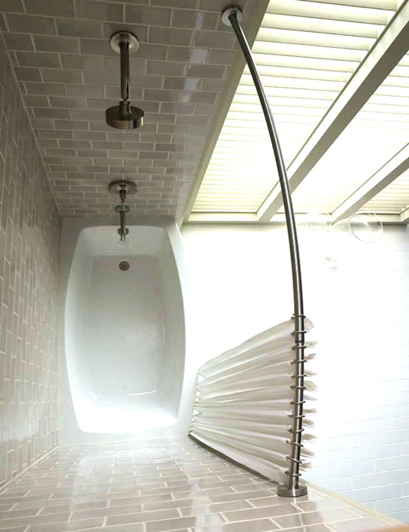 3. eine gekrümmte Duschstange Installieren. Dies fügt viel Platz zum Duschen und erfordern Schrauben in der Wand, anstatt nur eine Zugstange. Dies bedeutet auch, Sie müssen sich keine Sorgen machen über alle Bad Gefahren.
