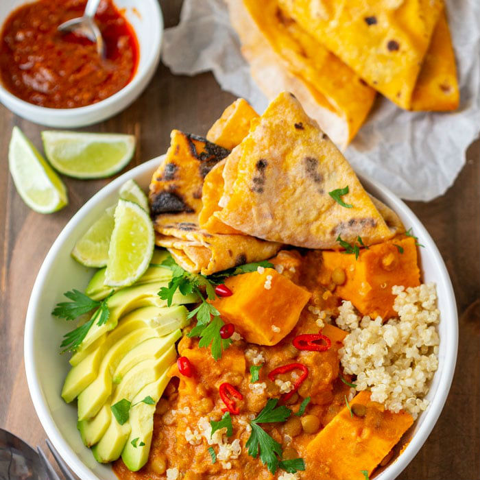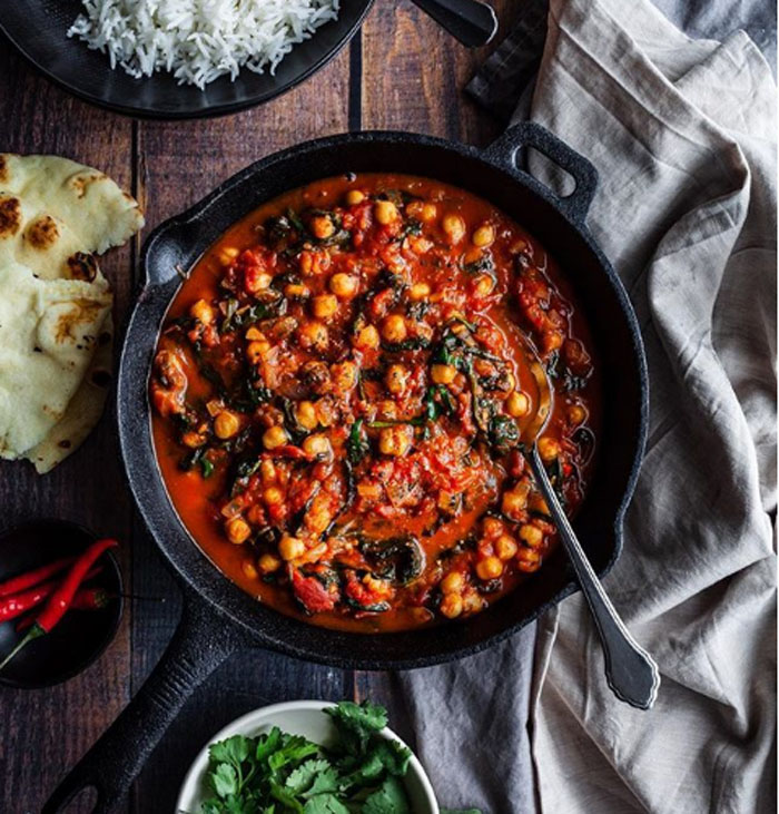 Curry ist ein wirklich vielseitiges Gericht und ist Fleisch, Fisch, Meeresfrüchte und Gemüse. Es geht unglaublich gut mit Reis und verschiedenen Arten von indischem Brot wie Chapati oder Naan.