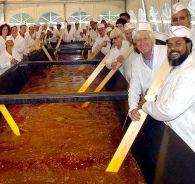 Die weltweit größte Curry der Welt in der Welt in Singapur von der indischen Chefs und kulinarischer Vereinigung am 1. August wurde hergestellt 2015. Es wog 15,34 Tonnen!