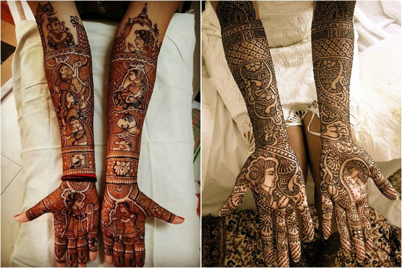 7. Sie können Mehendi sogar verwenden, um eine Geschichte darüber zu erzählen, wie Sie Ihren Partner getroffen haben, oder einen erheblichen Moment in Ihrem Leben. Schauen Sie, wie viele Lebensszenen hier präsentiert werden.