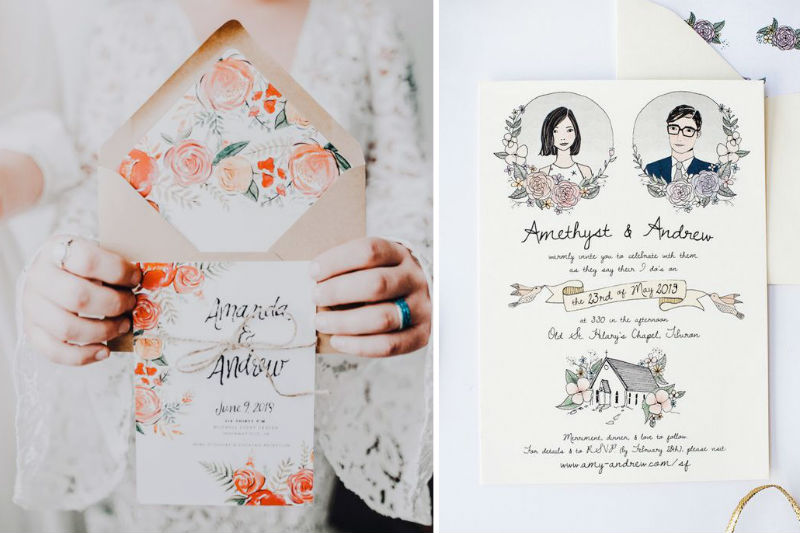 Viele Paare entscheiden sich aus der langweiligen E-Vite und entscheiden sich stattdessen, ihre Hochzeitsstätte mit personalisierten handgezeichneten Designs, entweder von ihnen, einem Liebsten oder einem gemieteten Illustrator zu dekorieren.