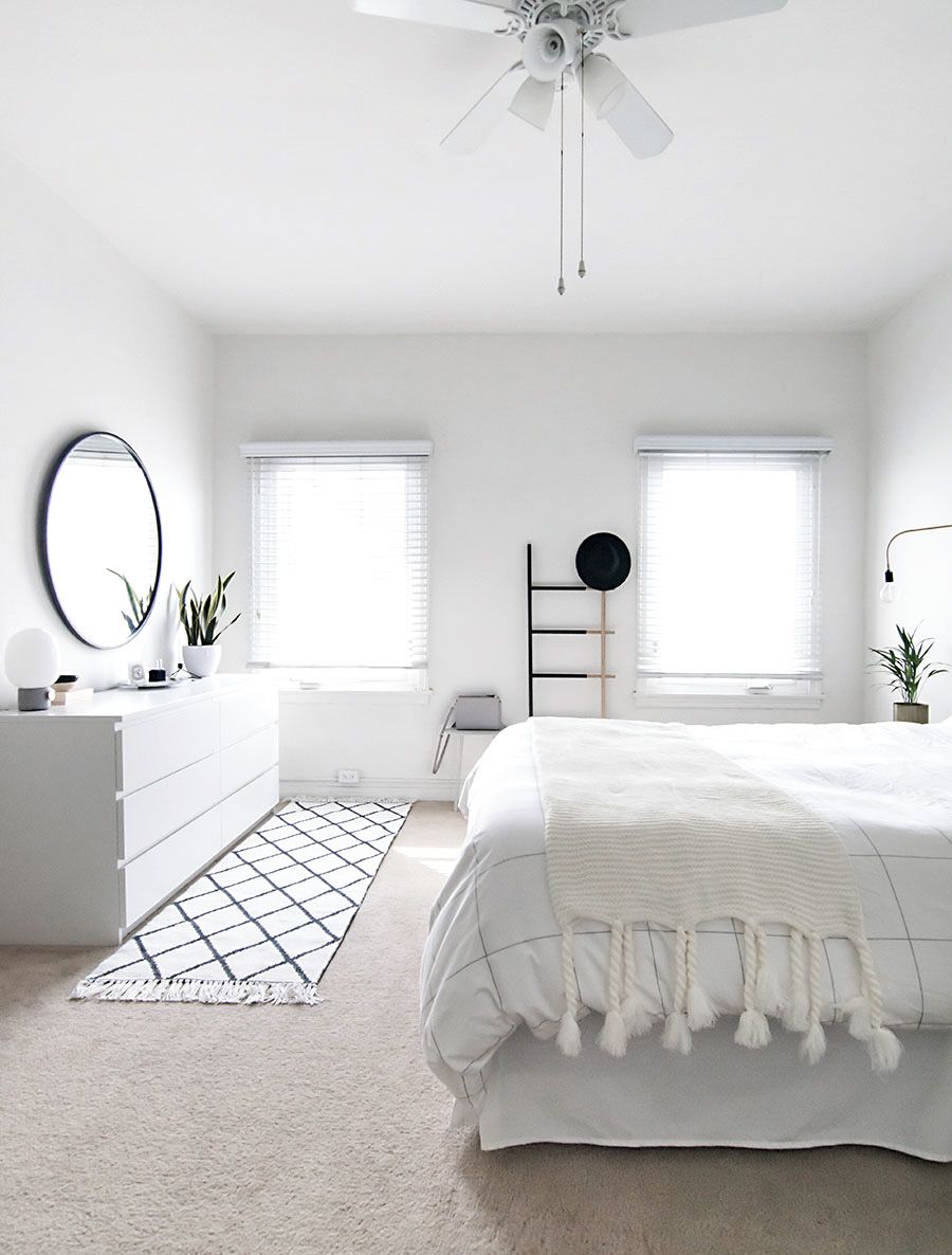 Schlafzimmer ist ein Ort, an dem Sie schlafen und entspannen sollen - das ist es. Es ist nicht Ihr Büro, Ihre Partyzone oder Ihr Schönheitssalon. Versuchen Sie also, Ihre Möbel zu begrenzen und haben nur das, was nötig ist, um eine gemütliche Atmosphäre zu installieren. Versuchen Sie auch, alle Ihre Möbel neben den Wänden zu platzieren, damit Sie freien Platz in der Mitte des Zimmers haben.