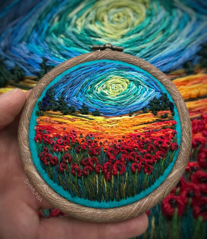 Man könnte denken, die Stickerei eine Kunst für Omas nur reserviert ist. Aber Stickereikunst ist lebendig und gedeiht. Russische Künstler Vera Shimunia sagt, dass ihre Bürste die Nadel ist, und wer ihre Arbeit gesehen hat, muss sich einig, dass sie ein Meister des Mediums ist, ohne Zweifel.