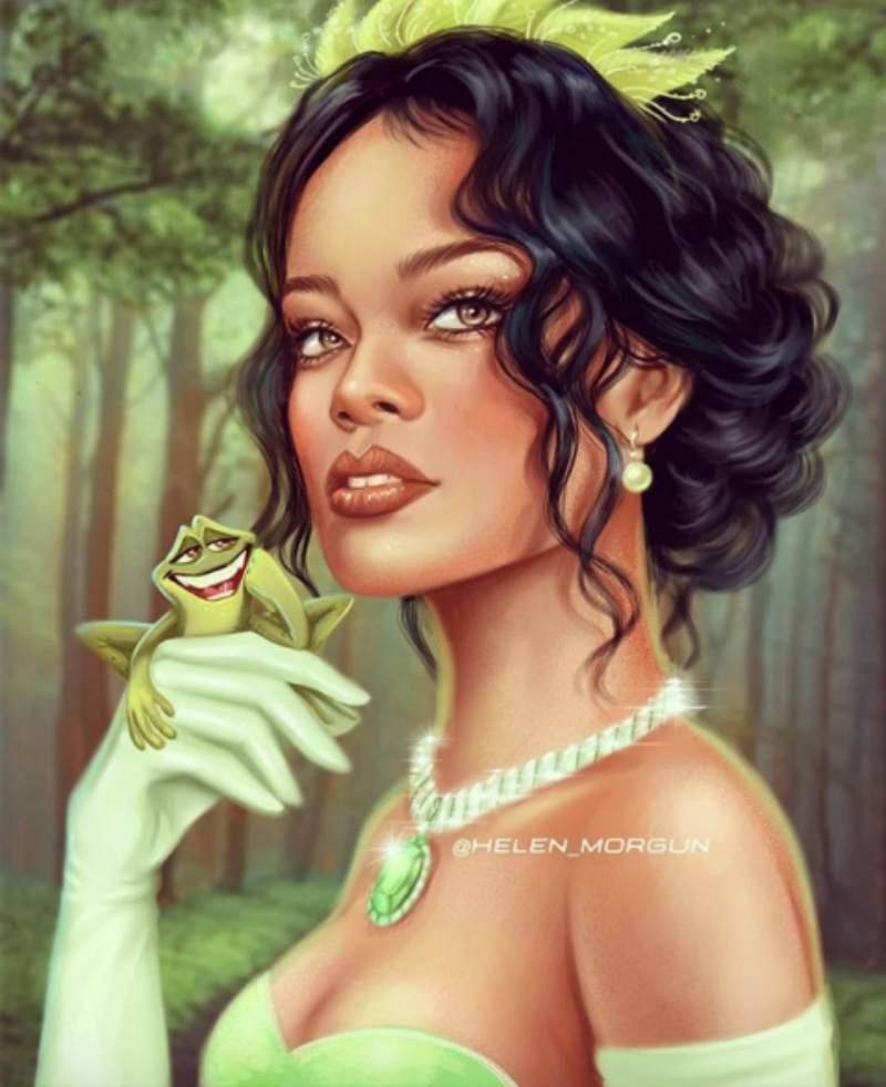 4. KöniginRiri als Tiana.. Das sieht das nicht nur absolut schön aus, sondern es ist ziemlich großartig, wie Rihannas Haltung in diesem Kunstwerk sichtbar ist und nur dem Charakter von Tiana fällt.