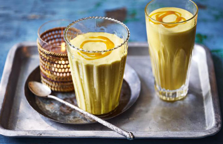 Lassi ist ein traditionelles indisches Getränk, das durch Mischen von Joghurt, Wasser, Gewürzen und manchmal sogar Früchten für einen zusätzlichen Schub des Geschmacks hergestellt wird. Lassi ist erstaunlich für die Verdauung und kann während oder nach dem Essen aufgenommen werden. Es wird zu einem perfekten Standalone-Teller, wenn es mit Honig gemischt, ein bisschen Kardamom und ein paar Früchte. Sie können auch ein salziges Lassi mit Erdkreuzkreuzkümmel haben.