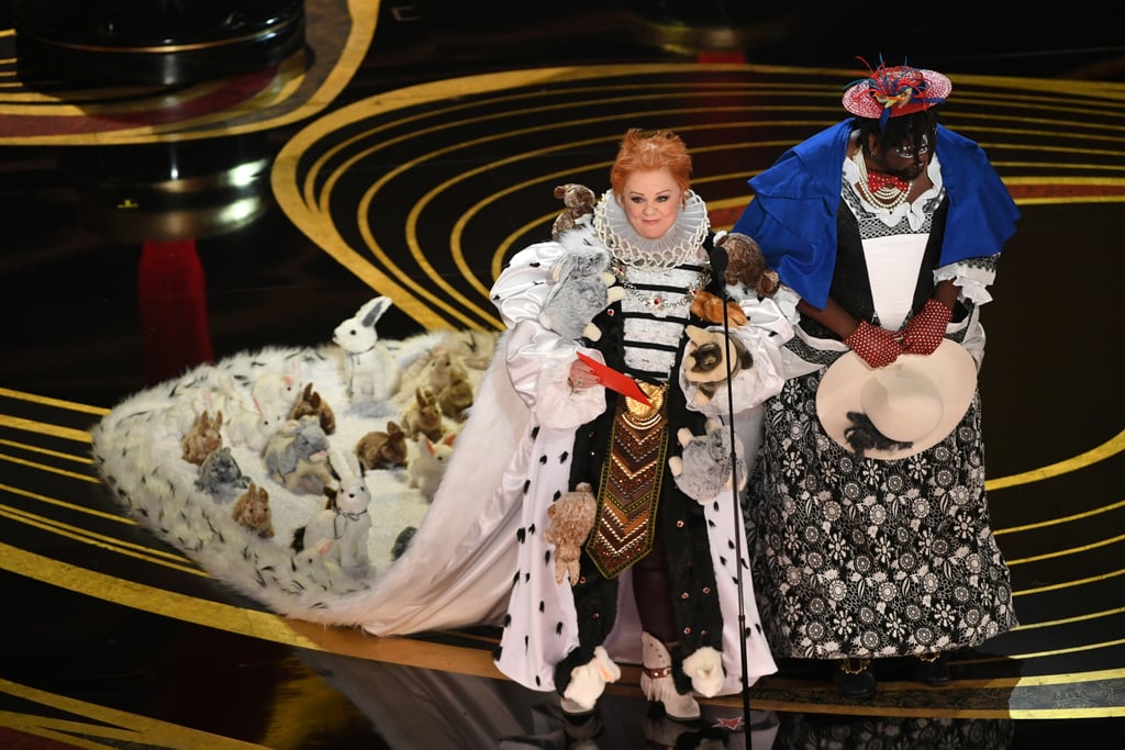 Wir liebten die verrückten Getups, dass Melissa McCarthy und Brian Tyrie Henry Henry auf der Bühne trugen, um die Auszeichnung zu präsentieren. Ich meine, haben Sie alle Plüschhäschen auf Melissas Kleid als Nicken zum Favoriten gesehen? Es war brilliant. Und die Rede war so Deadpan. Wir brauchen mehr Sachen wie diese an den Oscars, bitte.