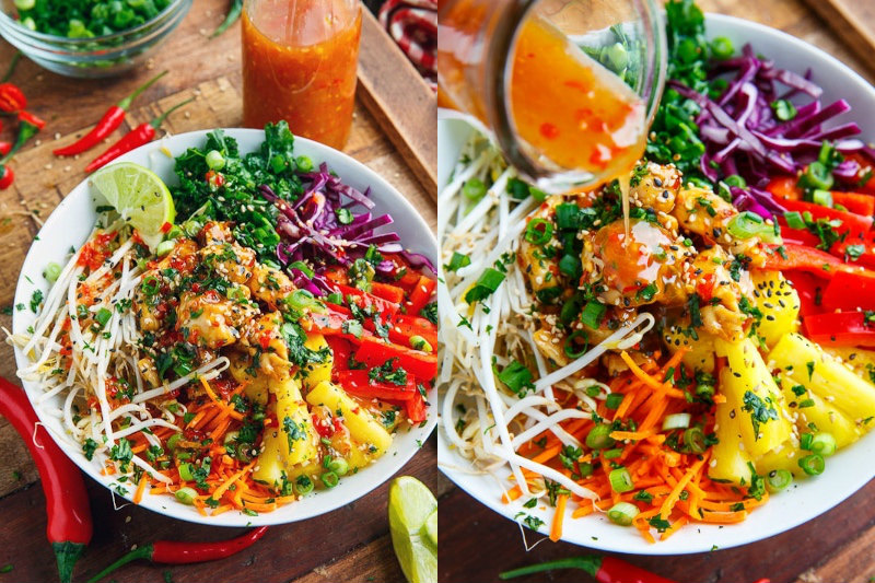 Wer kennt sie nicht, wie die Kombination von süßen und salzigen? Es ist wirklich etwas Magisches an unsere tastebuds. Die hausgemachte süße Chili-Sauce ist bereits genug, um uns lieben diese Buddha Schalen zu machen. Nun fügen Sie das Huhn und buntes Gemüse und Sie haben selbst eine perfekte Mahlzeit bekommen.