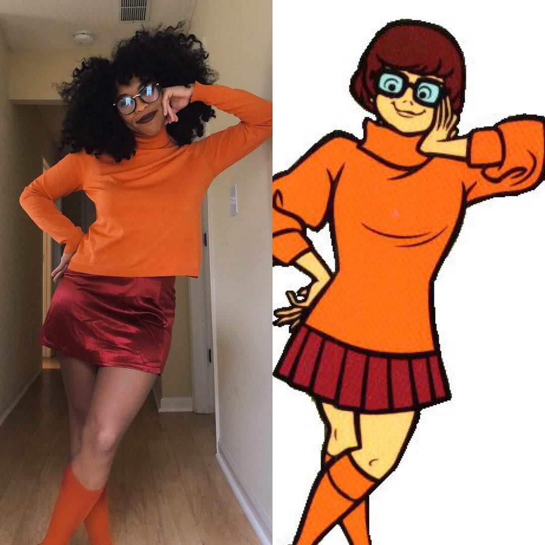 Wir haben eine Menge von Velma Interpretationen über die Tage gesehen, aber sie sind entweder zu zusätzlichen oder zu nerdy. Kiera findet die subtilen Mittelweg, mit dem perfekten orangeen Jumper für einen ungefältelt roten Samt Minirock entscheidet sich statt Velmas plissierten Version.