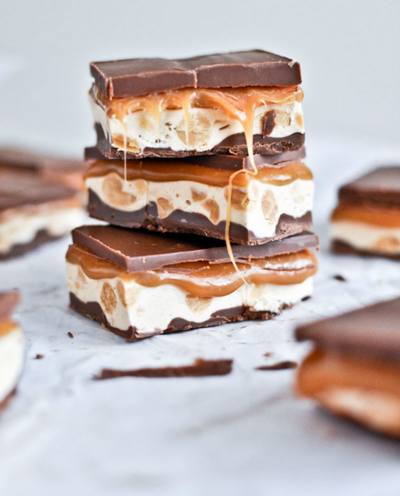 Was ist besser als in den Laden zu gehen und auf Snickers-Bars zu grügen, wie es Halloween ist? Ihre eigenen Snickers Bars zu Hause machen, damit Sie natürlich ein unbegrenztes Angebot haben können. Diese Nougat-Schicht ist so viel mehr erhaben, wenn es frisch aus dem Ofen ist ...