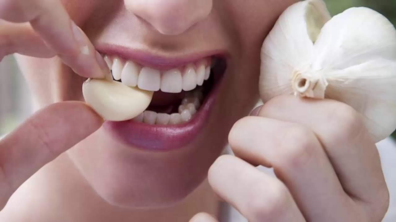 7. Legen Sie eine Knoblauchzehe in Ihre Rückenmolaren. Biss sehr leise ab, bis der Knoblauchrisse und Sie können den Saft nach innen absaugen. Nicht das angenehmste Mittel, aber einer der effektivsten.