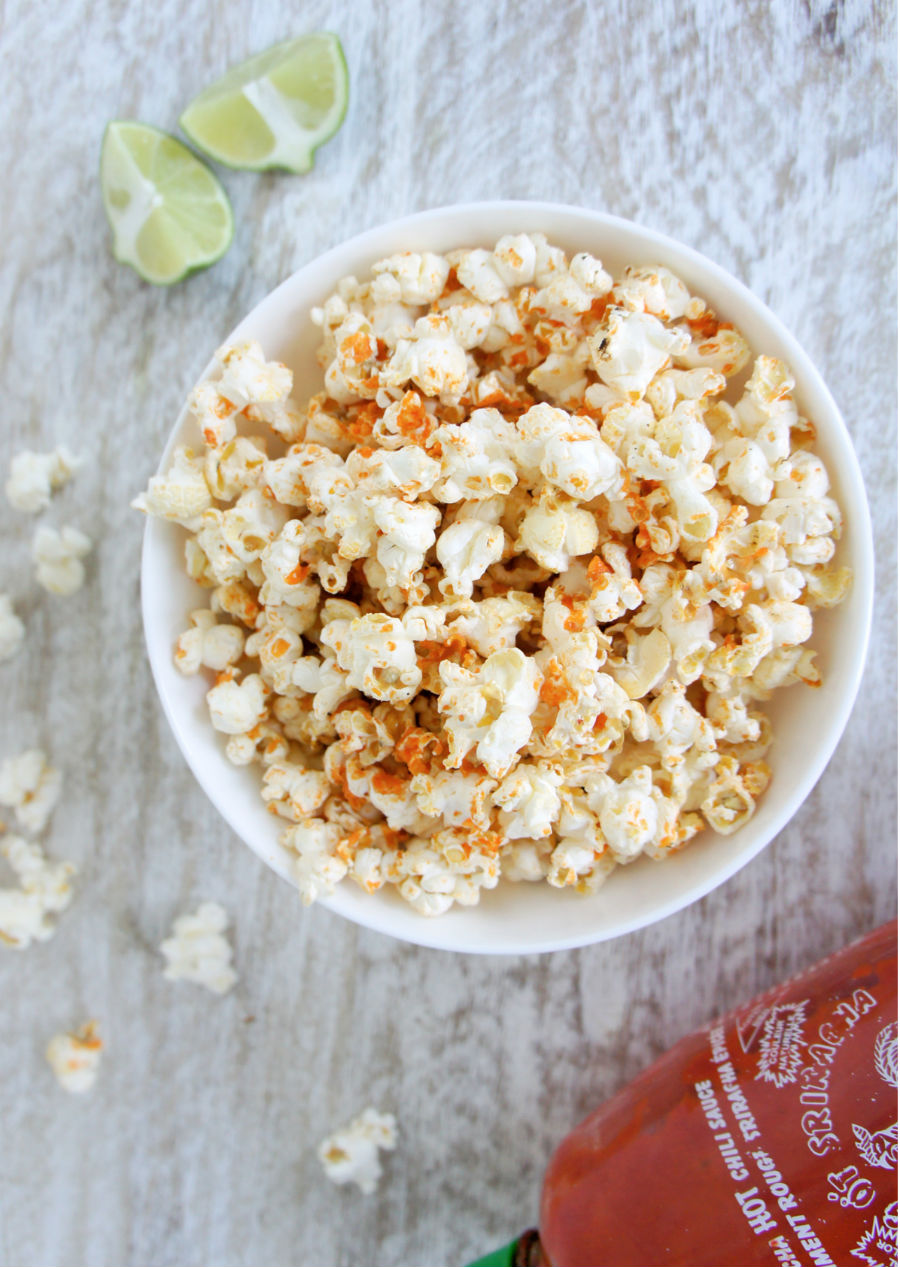Sie könnten denken, dass Popcorn nicht das beste Essen ist, mit dem Sie experimentieren können, und hier sind Sie falsch! Diese Sriracha und Lime Popcorn schmecken wie etwas, das direkt aus einem poshischen Restaurant kam. Fügen Sie etwas Cilantro- und Riegelparmesan-Käse für einen Aroma hinzu.