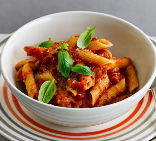 Penne Pappa Al Pomodoro ist eines der grundlegenden Grundnahrungsmittel italienischer Lebensmittel - vor allem für Vegetarier. Dies ist ein leichtes Abendessen mit Wochentag, das in einer halben Stunde vorbereitet ist. Gefaltet in Brotkrusten, getrockneten Kräutern und gehackten Tomaten sind alle in garlicky-Aromen eingewickelt.