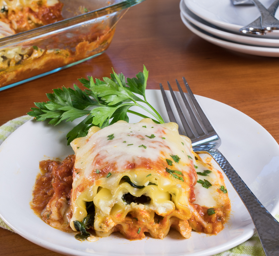 10. Lasagne mit Spinat, Pilzen und drei Käsesorten
