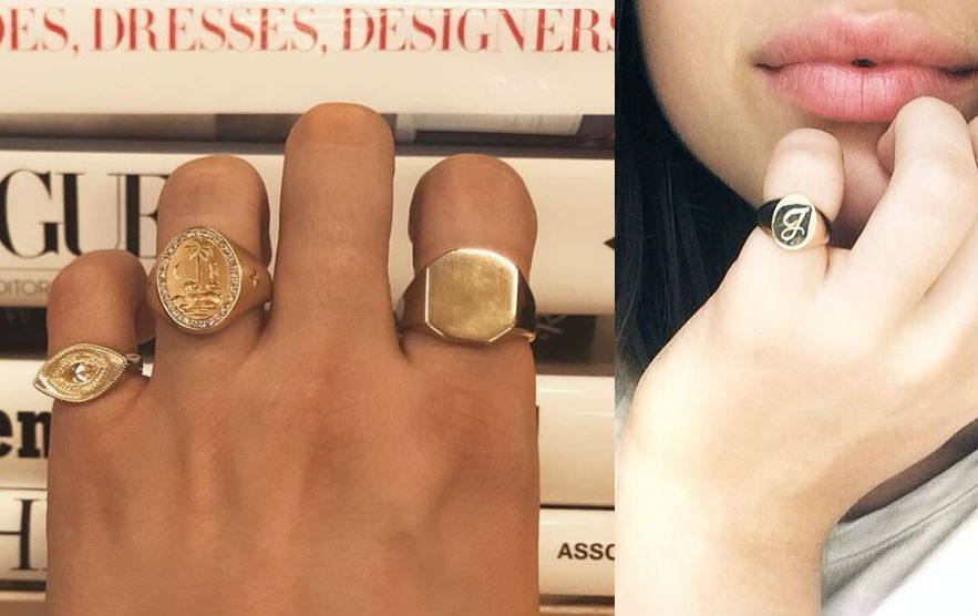 Dieser flach torte Ring tendiert in Gold, Bronze und Kupfer, mit einem Highlight auf kundengerechten Oberflächen. Die Verbraucher können sich entscheiden, mit benutzerdefinierten gravierten Aussagen oder Symbolen zu gehen, die eine beliebte Wahl für die kommende Saison sind. Wählen Sie ein Symbol wie einen Familienwappen aus oder gravieren Sie einen Inside-Witz zwischen Ihnen und Bae.